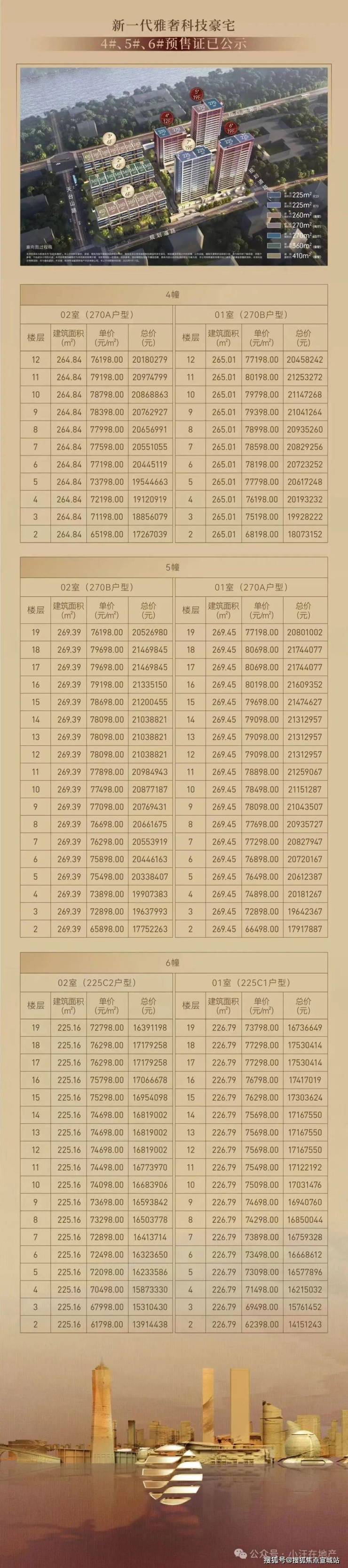 首开户型:36套225㎡/58套270㎡;