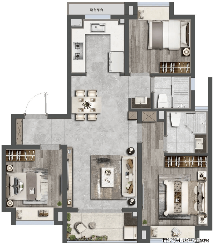 社区方面,项目打造全龄段,全维度活力健康住区,以“两轴一心、一环五区”园林景观规制约7500㎡中央景观,高配约600米环形健身步道。