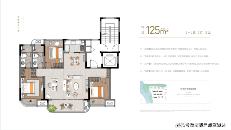 2、(方正)户型方正,高得房率,超12米三开间朝南,动静分区,流畅居家动线;