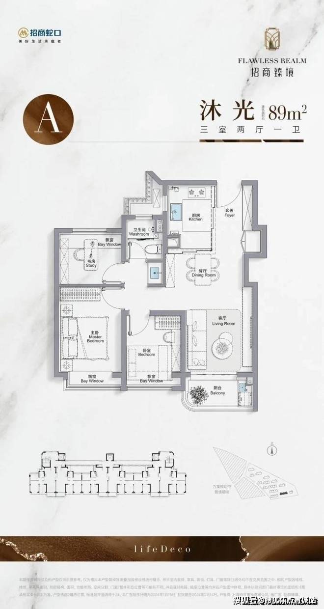 建面约89㎡3房2厅1卫▼