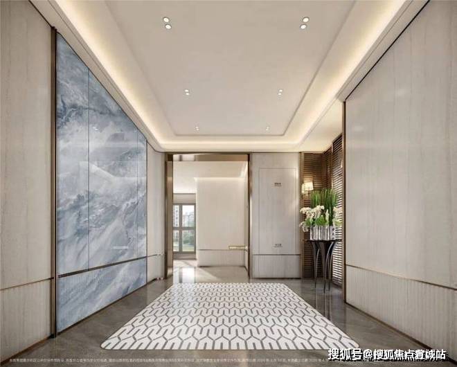 地上精装大堂的设计同样出彩,地面的石材拼花造型与墙面的石材背景相得益彰,将静奢海派的艺术风格展现得淋漓尽致,为业主带来无与伦比的视觉盛宴。