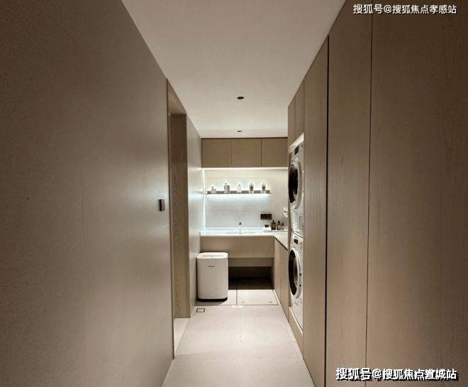 靠户型东侧,样板间设计了一个独立衣帽间和主卧套房的第二个卫浴空间。