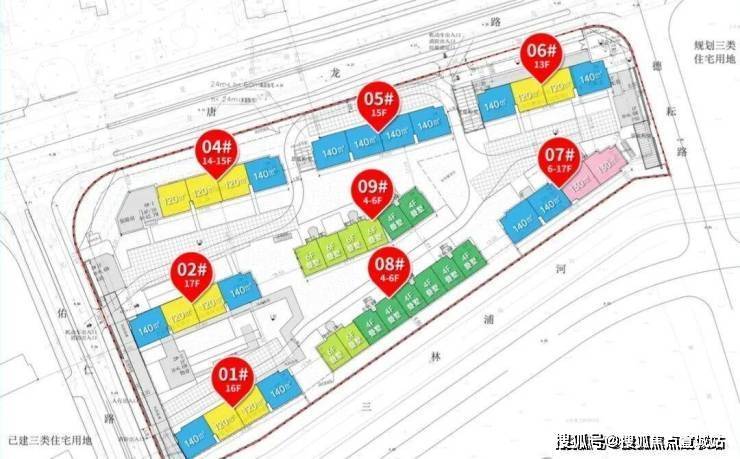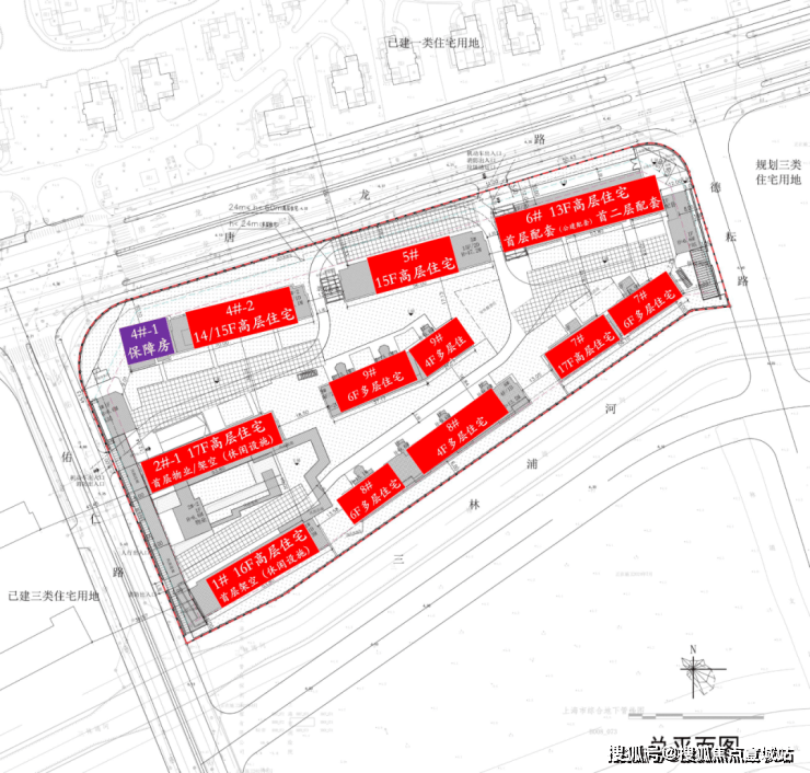 其中,1#、2#-1、4#-2、5#、6#为13-17层高层住宅;