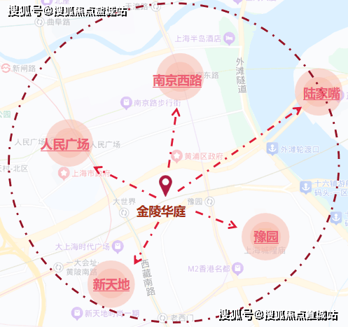 作为上海绝对市心,金陵华庭2公里生活圈囊括人民广场、外滩、新天地、豫园、陆家嘴等上海市地标性区域。