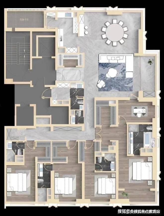 尤其主卧星级套房,配置独立衣帽间、书房,奢华主卫四分离,双台盆+淋浴区+大浴缸+智能马桶,私密性&奢适度无敌;