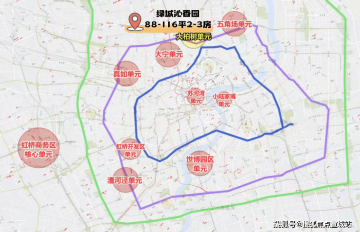 绿城沁香园直线距离北外滩约5km,西接有高端产业、高能级商圈大宁;东临上海城市副中心、顶级商圈五角场,一脚油门通达核心区域。