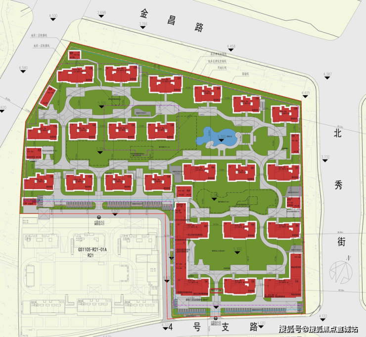 住宅部分,该项目拟建造23幢可售住宅,层高12-17F,其中12F、13F、14F各1幢,剩余20幢均为17F。据立面图、剖面图所示,该项目住宅层高约3米,架空层高约4米。