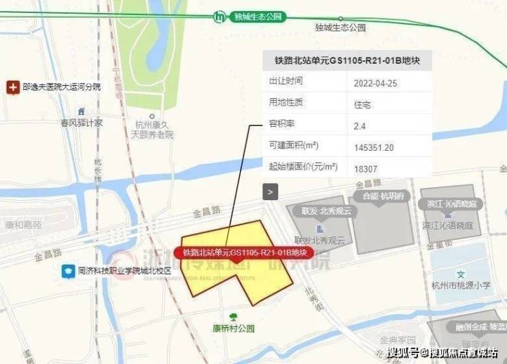 杭州锦翠金宸府售楼处电话:400-8558-334杭州锦翠金宸府售楼处电话:400-8558-334杭政储出[2022]5号铁路北站单元GS1105-R21-01B地块面积90.84亩,容积率2.4,建筑体量约14.54万方,用地性质为住宅用地。