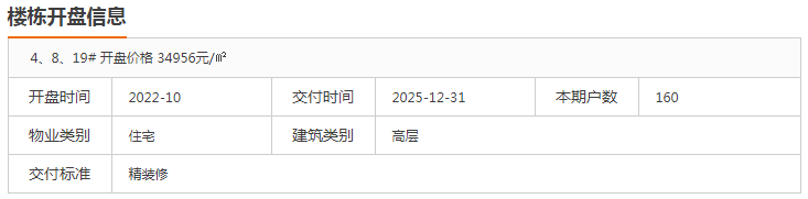 2022年10月16日杭州滨江大家招商锦翠金宸府4、8、19幢领出预售证,预售证号:杭售许字(2022)第000098号。本批次为首开供应约160套70年产权住宅,建面99-138㎡户型,本批次非清水单价¥29254-37050元/㎡,非清水总价¥290.05-508.88万,非清水均价¥34956.6元/㎡,装修标准¥3500元/㎡。