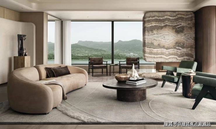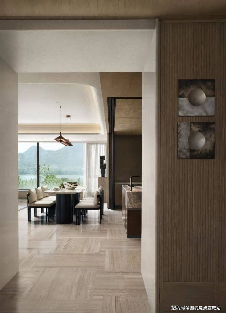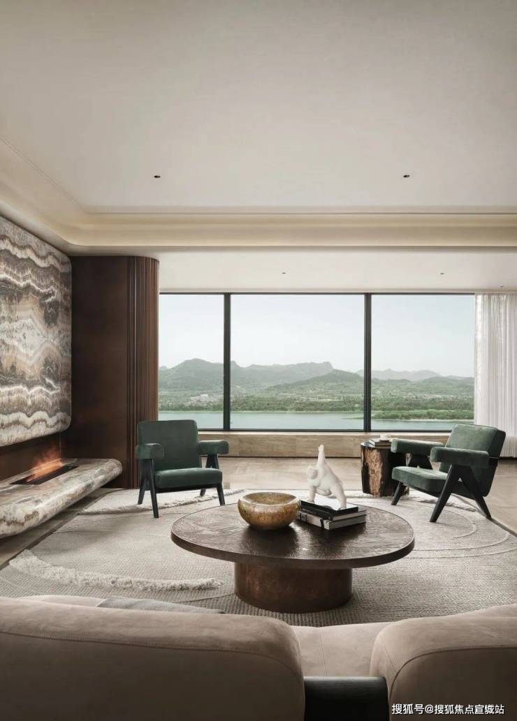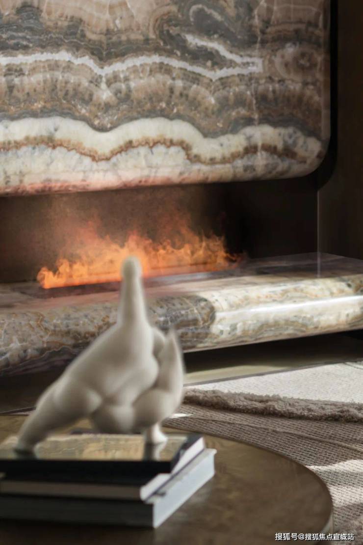 天然石材、木材与黄铜调和出空间醇厚质朴、温润坚定的雅奢调性,亲切而放松。