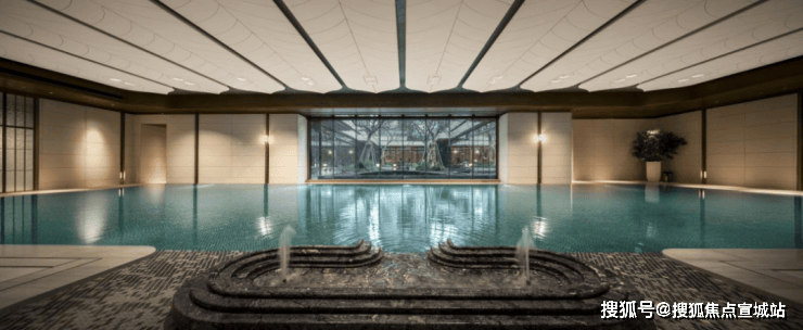 恒温泳池: 第一,采用了景德镇烧制的陶瓷马赛克,独特的釉面色彩由 景德镇老师傅手工浇筑而成 ,充满人文艺术底蕴;第二,羽毛天花造型,由 600余件铝板 打造,表面采用了仿贝壳纹的艺术漆处理,带来松弛度假感;第三,不仅配置了约25m×10m的4道泳池,还采用了 奥运会同款空调除湿系统, 彰显高档品质细节!