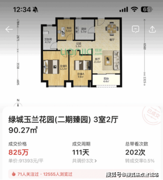 6.二手市场价格可期 , 旁边绿城二期今年成交一套90m²小户型,单价9.1万,比保利天奕前期小户型最贵单价还贵出近1万/m²!