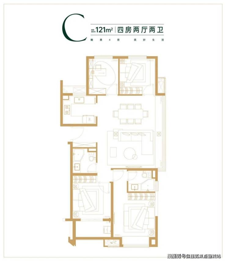 户型面积:主推 90-144㎡的 3-4 房,有 90㎡3 房、99㎡3 房、121㎡4 房、128㎡-135㎡4 房等多种户型可供选择。