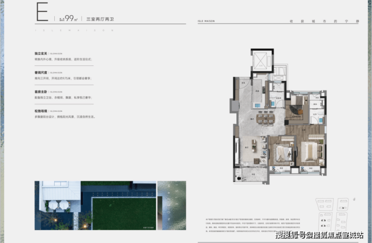 99㎡这个户型是整个板块都非常难得的大三房户型,尤其是餐厅和主卧部分,整体尺度非常奢阔。
