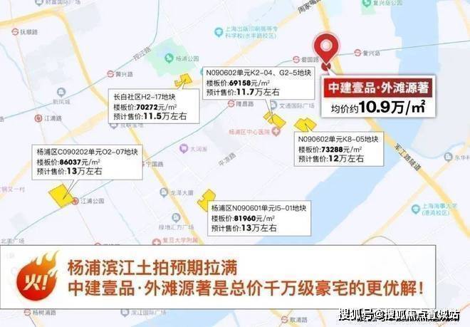 杨浦滨江核心地段项目价格有望突破13万+/㎡,即使离江比较远长白社区项目预计售价也在11.5万+/㎡。