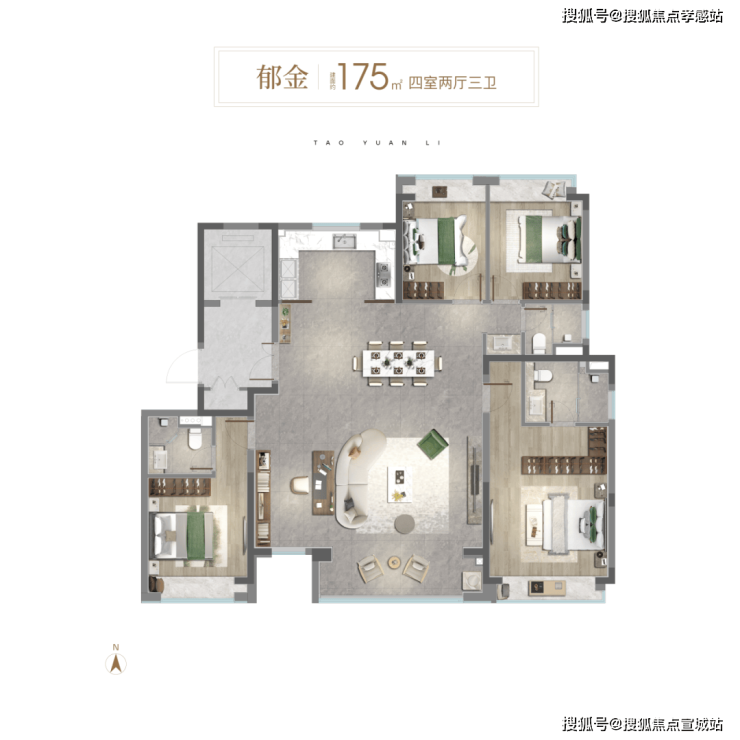 中环·桃源里✪✪售楼处电话✅✅:400-8123-224☎️☎️建面约175㎡四房户型▼