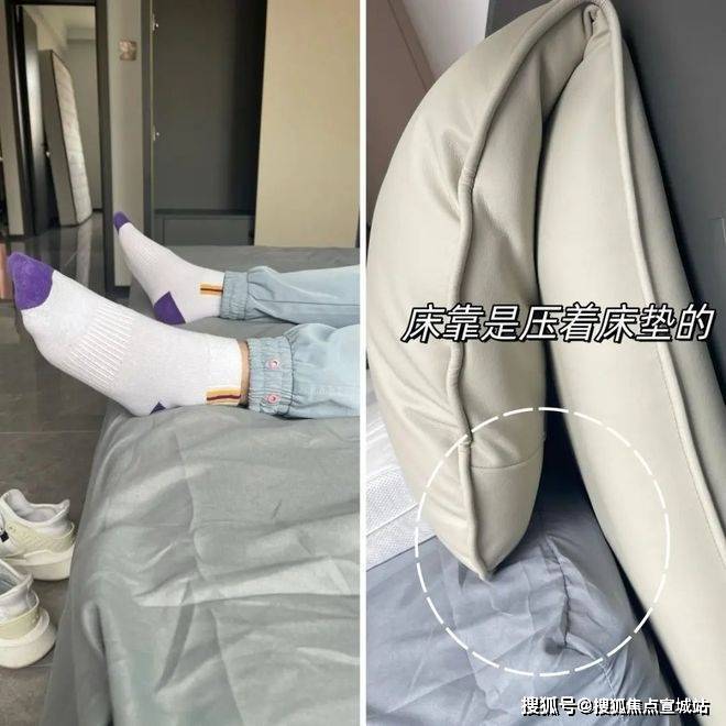 床靠压着床垫的设计,直接压缩了床垫有效长度,身高一米八的人睡着脚都伸出去了。