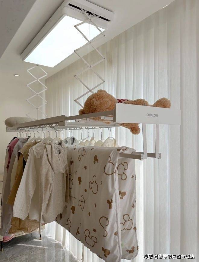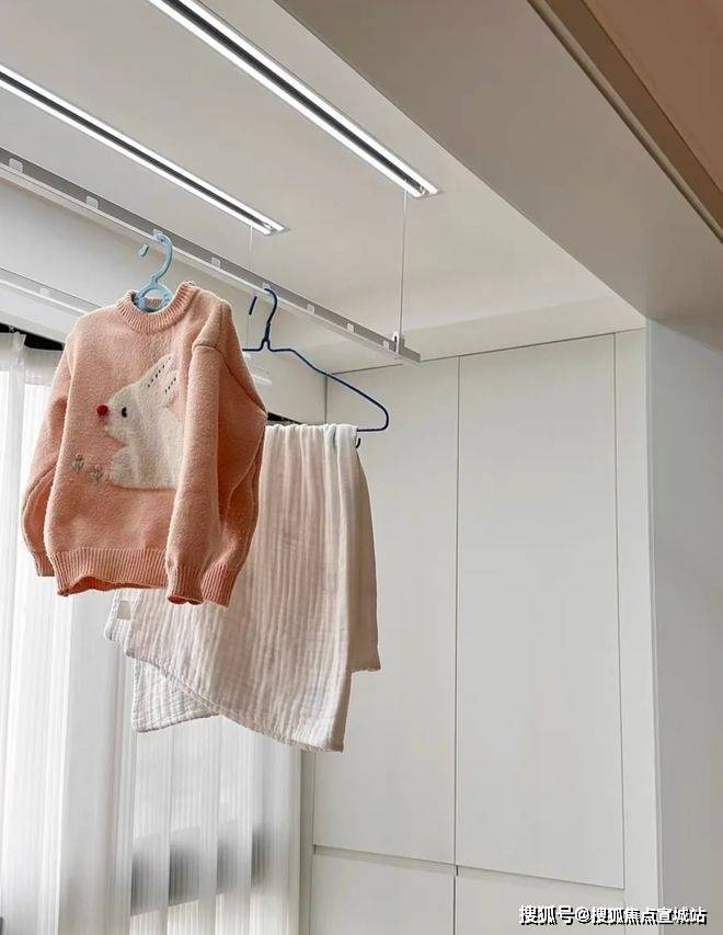 极简风的内嵌晾衣架,嵌入吊顶后几乎“隐形”,很多人一眼就爱上了。