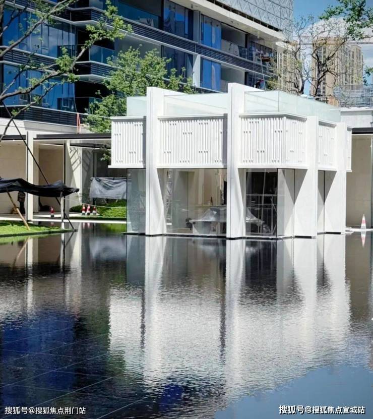 「安璞」的景观设计融合了东方诗意和现代造园手法,打造出“一轴两区四园两巷”的格局。