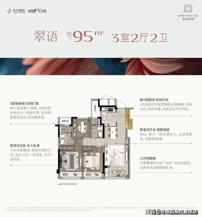 中天拾光翠语售楼处营销中心:400-8828-814中天拾光翠语售楼处电话/地址☎:400-882-8814(开发商热线)建面约95㎡的三开间朝南户型,从进门处就有巧思,特殊设计的“S墙”,正好可以将冰箱内嵌,为厨房省去一大块空间,墙面还能照样拉平,美观且实用。