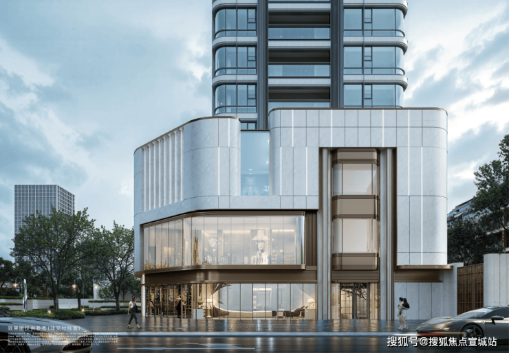 其一, 270°转角弧形飘窗 的创新,超绝的窗墙比造就空中全景舱。弧面玻璃都是三玻两腔,造价高昂。其二,在建筑层间用 弯弧铝板 来勾勒线条,工艺复杂、成本昂贵,楼体 铝板也是弧面设计, 并且整体大面运用滚涂工艺,色彩鲜艳、防腐性能好、耐气候性也更好,豪宅气质更加历久弥新!