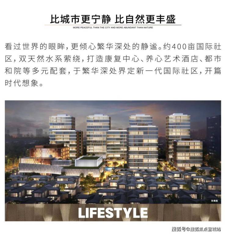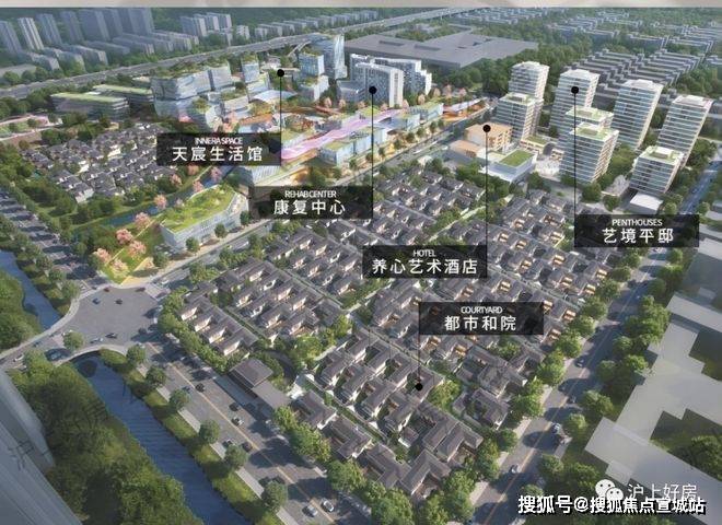 天宸国际社区北临银都路,南至梅州路,东起S4沪金高速,西至都莲路,总占地约400亩,是涵盖精品酒店、康复医院、九年一贯制学校、艺术商业街区和健康多元化产业社区。