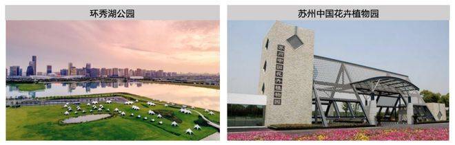 项目东侧市政规划公园、南侧北河泾生态体育公园(在建)、苏州环秀湖公园、苏州中国花卉植物园。