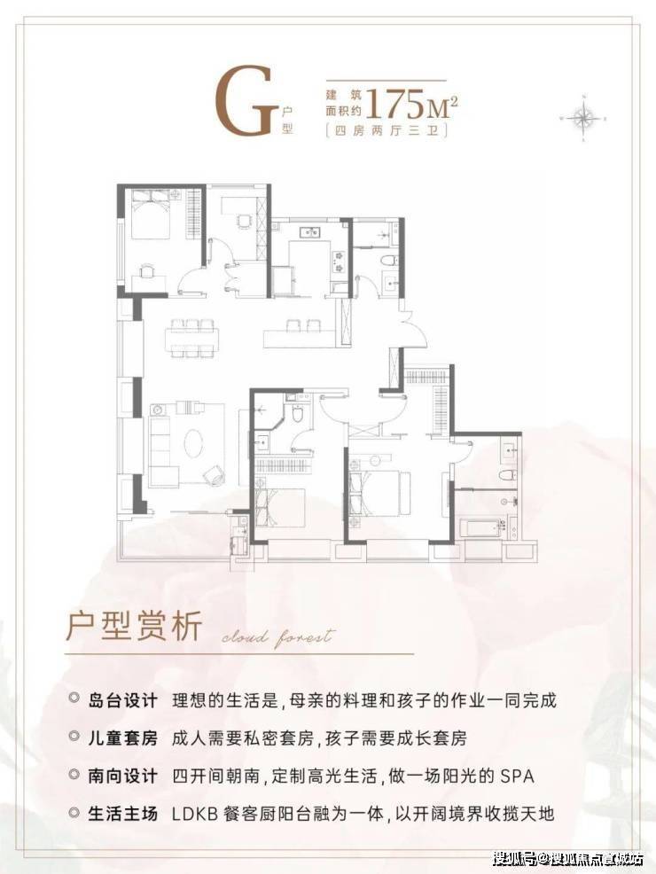 建面约175m²4房2厅3卫户型▼