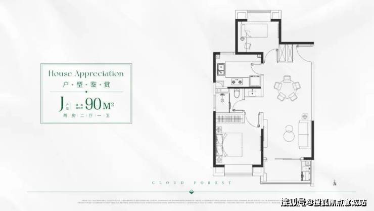 J/K户型 建面约90㎡2房