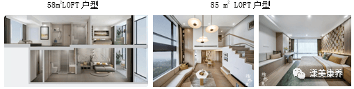 户型产品:提供多层颐乐公寓、康养公寓和 LOFT 公寓三大类产品,面积段在 47-224 平方米,包含 1 居、2 居和 3 居产品,全部户型采用适老化设计。其中,LOFT 公寓层高为 4.78 米,采用双钥匙模式;康养公寓面积段在 38-98 平方米,依托颐养中心,为高龄长者提供服务。