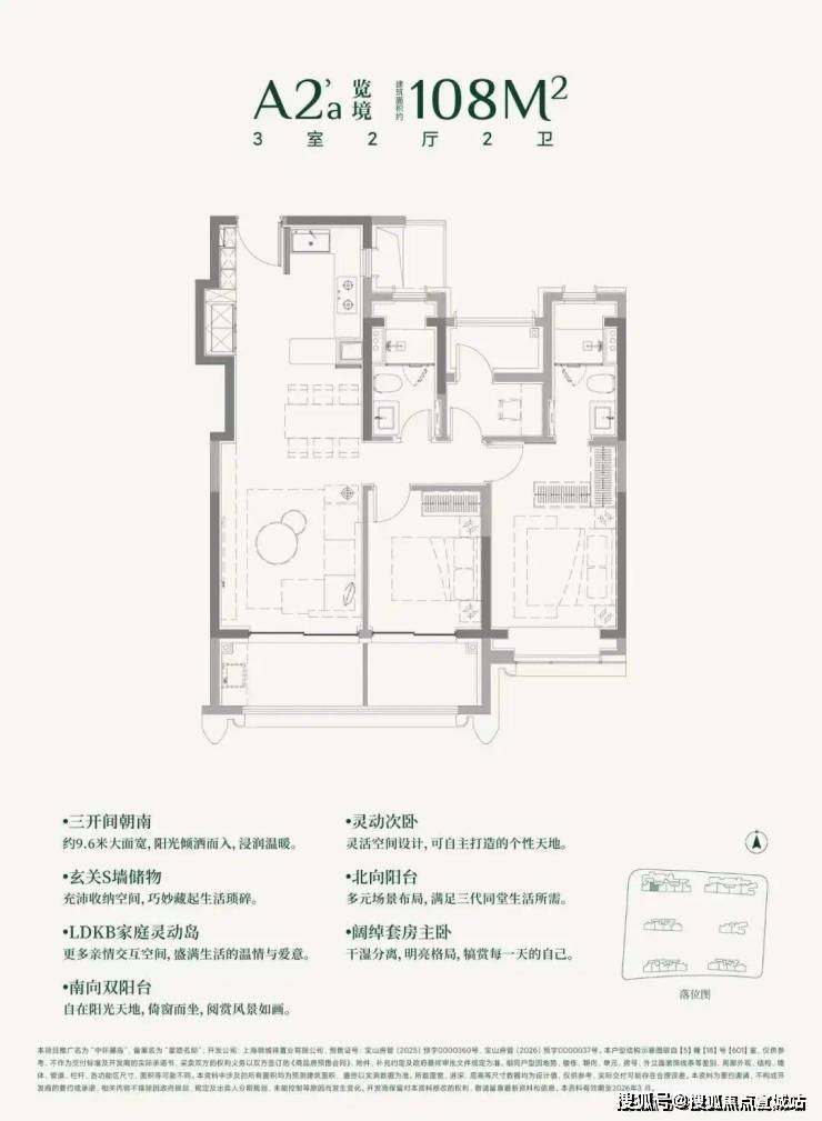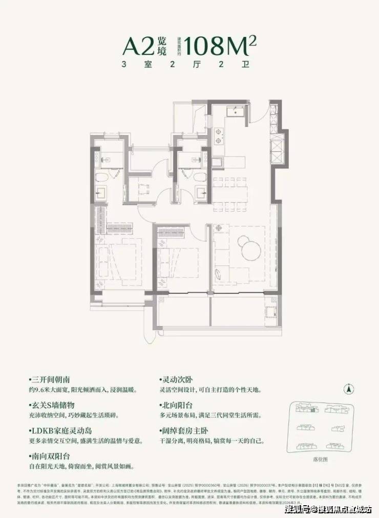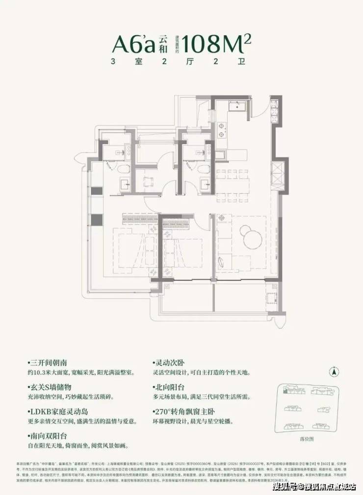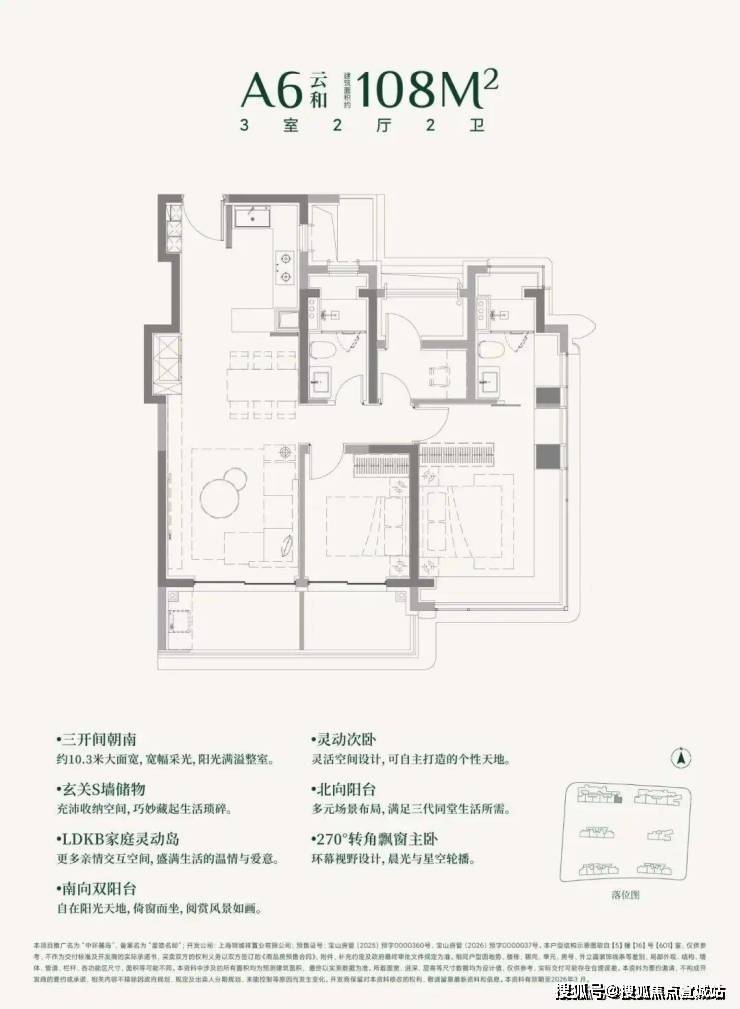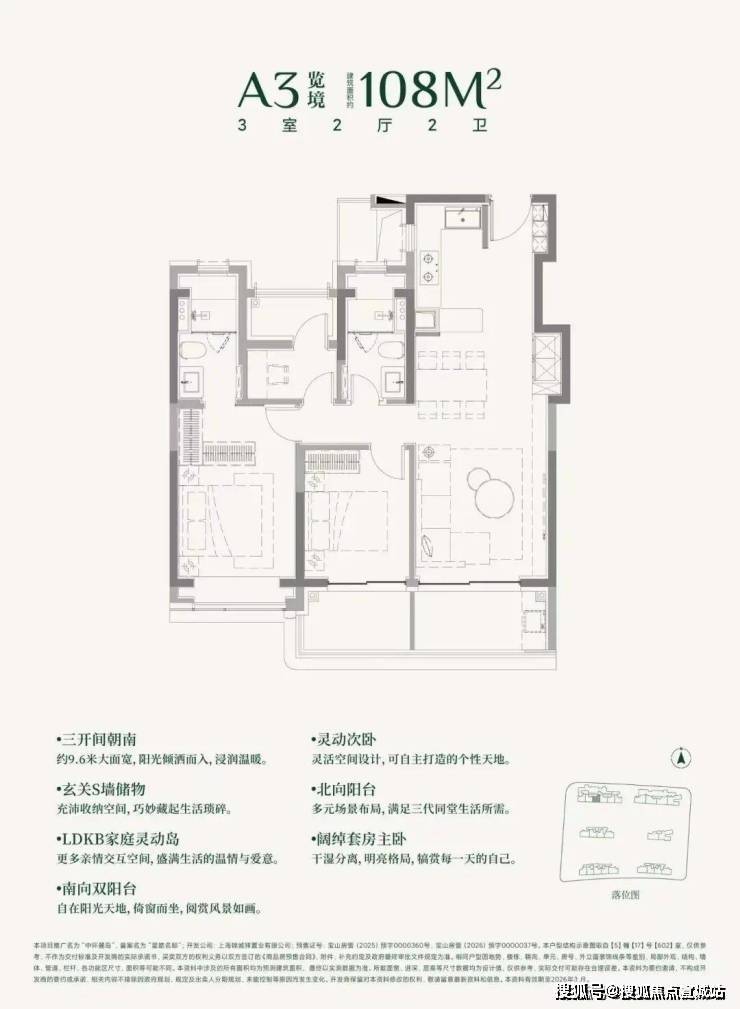 建面约108㎡3房的三阳台面积就高达约13㎡。(阳台仅附赠一半面积)