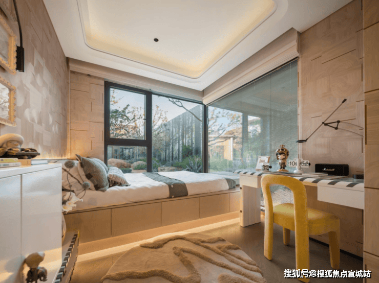 并且,卧室的尺度感极佳。即使是最小的北房间也能放下一张床+一个书桌,加上约270°的采光面,这个户型可以满足一个家庭各个阶段的需求,一步到位的好产品。