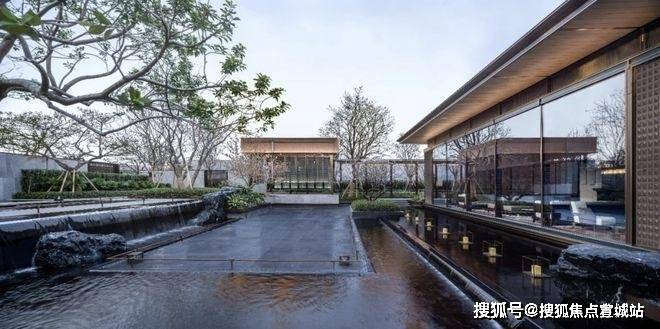 打造长约200米、近1000㎡水系景观,贯穿入口、庭院、归家轴线和景观主轴,采用五重造水形态,可行、可望、可游、可居,正是中式园林所追求的空间意境。