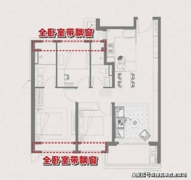 3.高定奢宅:产品力标杆户型,3-4房多户型可选,不仅方正朝南、采光出色,空间场景的使用功能也极具亮点