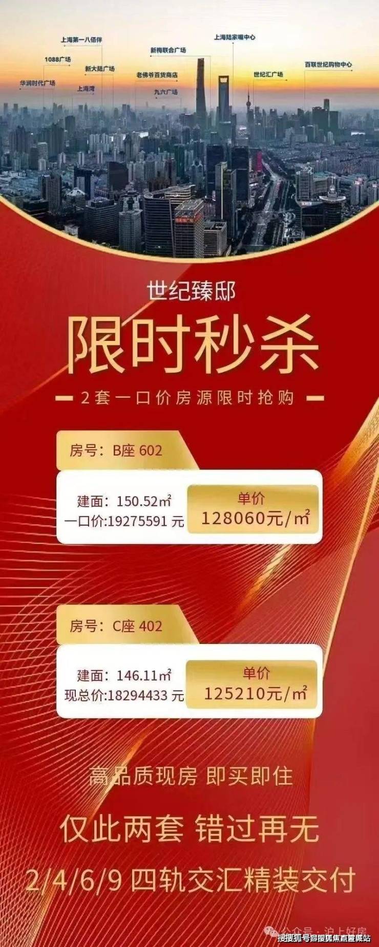世纪臻邸售楼处电话:4008123224世纪臻邸售楼处电话:4008123224世纪臻邸售楼处电话:400-8123-224,上海浦东陆家嘴国际金融中心世纪大道地铁4轨交汇,建面约150-261平米,准现房6套,约179-261平米露台复式共27套,均价约13.18万/平米,特价1829万起。