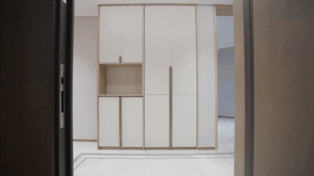 入户玄关的设计,将尊崇感,私密性拉满,还额外增加了更多的收纳空间。