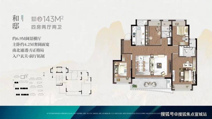 ✅6栋9-11F洋房,143㎡户型(四房两卫)、建筑面积169㎡户型(四房三卫);
