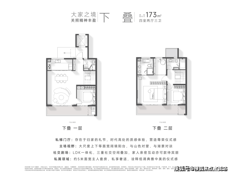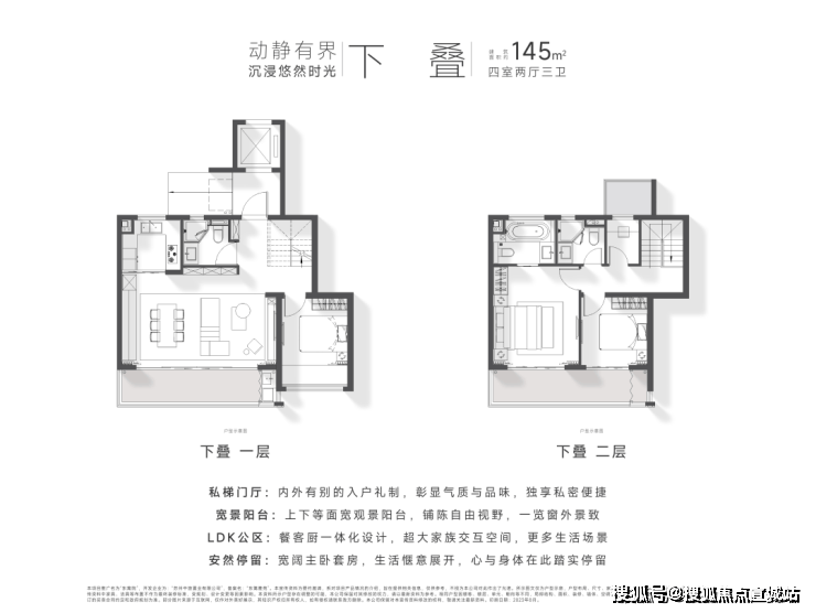 户型亮点:采用2梯2户配置,类私梯入户搭配独立内外双入户礼制,保障居家私密性;全横厅设计搭配LDK多功能家庭区,135㎡户型还做到全3卫配置;搭配IMAX观景阳台与宽幕窗景,下叠带35-50㎡庭院,上叠配有阁楼露台,部分户型全南向设计,能充分观赏山湖景色。