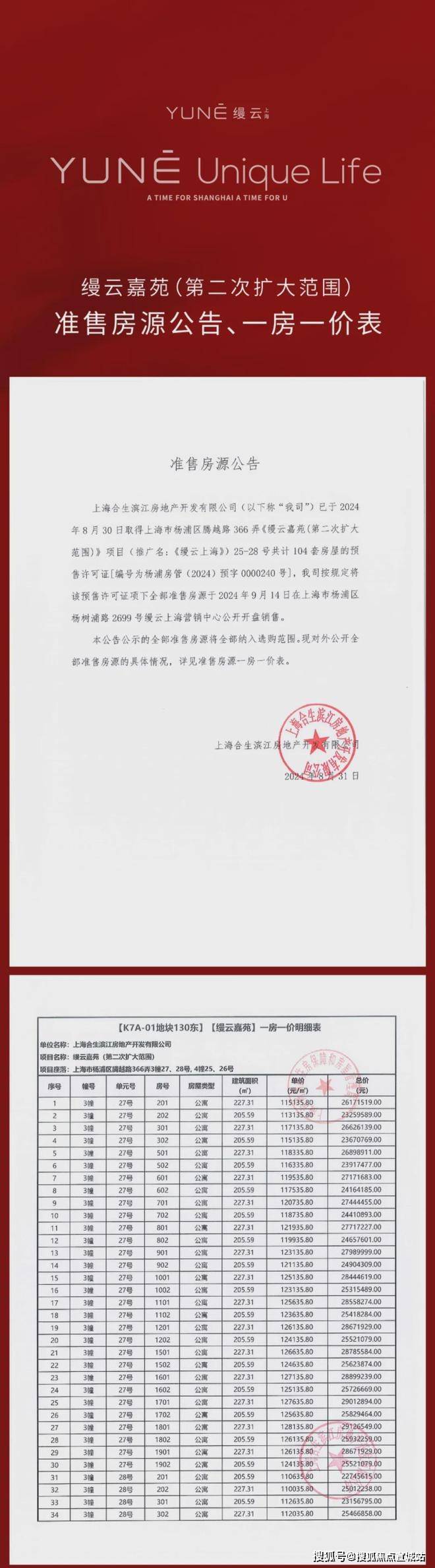 缦云上海三期一房一价表: