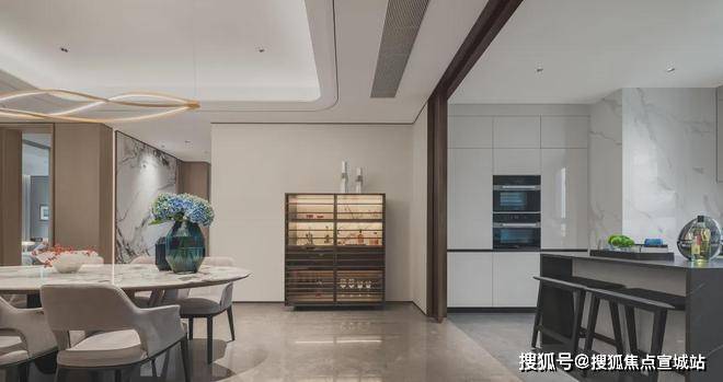 室内设计,秉承摩登东方的理念,设计以人、生活为中心,从空间本体和情感层面都回归生活,270度环幕采光,开放式会客厅设计,兼具尺度感与功能性。