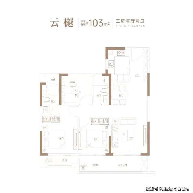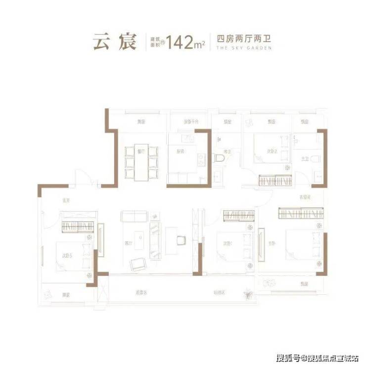 在售户型:103㎡(三房两厅两卫)116㎡(三房两厅两卫)128㎡(四房两厅两卫)142㎡(四房两厅两卫)