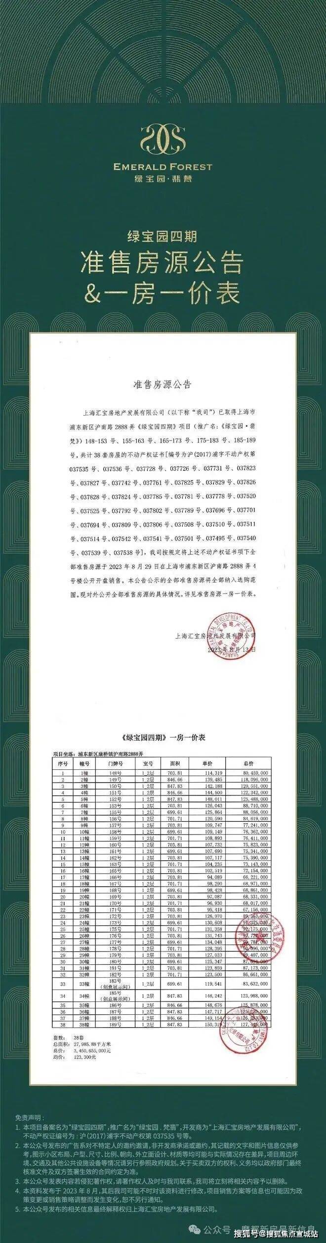 【绿宝园翡梵】:建面约684/748/859平别墅,共38套,少量房源在售,可直接下定,总价约7000万起!