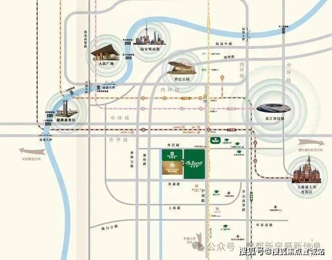 项目距离外环约1.5km,东侧紧邻沪南公路和地铁18号线,首先康桥东接迪士尼国际旅游度假区,北接联洋世纪公园,距离陆家嘴约12公里。