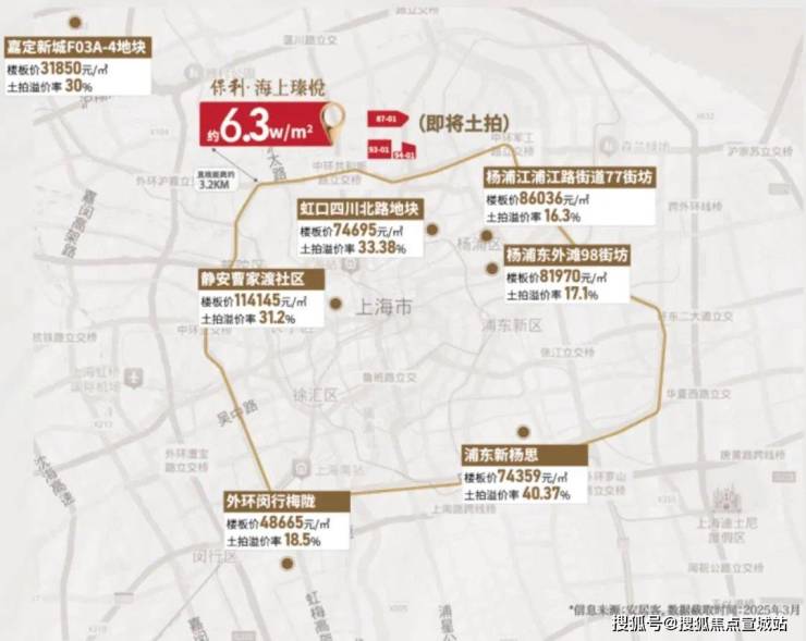 而5月14日上海市土地交易市场发布宝山区W12-1301单元90-01、91-01、92-01、93-01、94-01、87-01地块挂牌,地块起拍价81亿,起拍价对应的可售商品住宅整盘微利售价6.3万/㎡,若以当前市场30%溢价率来算,对应的可售商品住宅整盘微利售价将直冲7.9万以上/㎡,中环旁大四房总价更是轻松破千万!