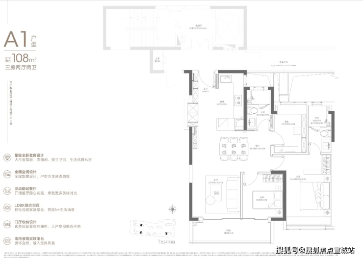108㎡的入门级三房,起步门槛相比润府提高不少。