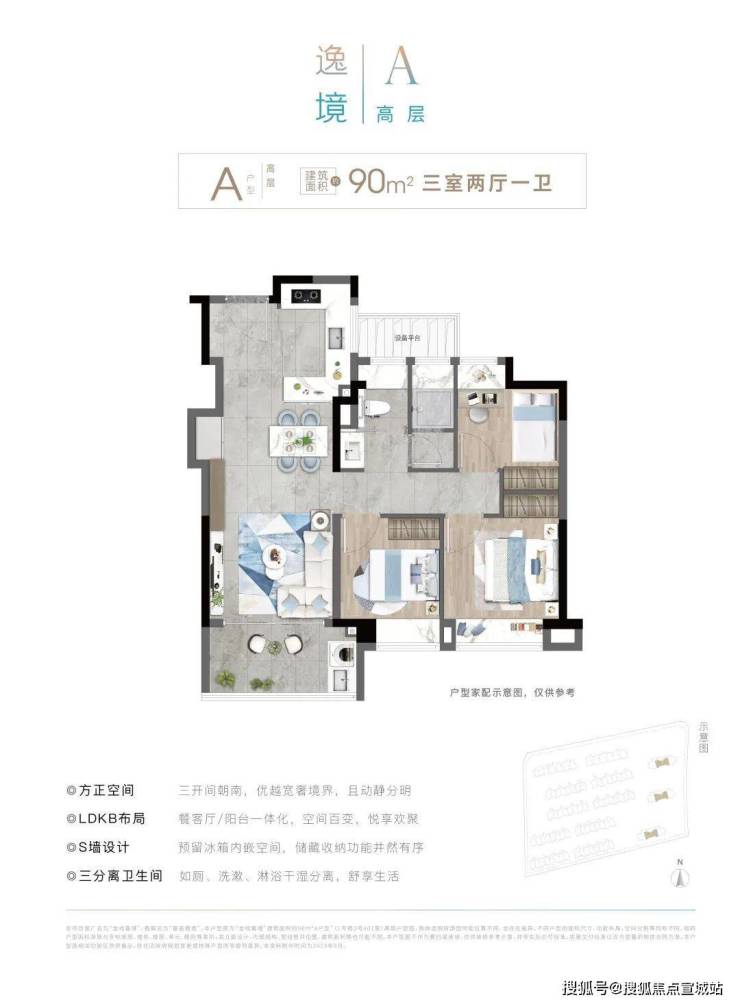 在整个嘉定新城,建面约100㎡3房是主流,总价基本都在约500万级。而金地嘉境打破常规,建面约90㎡户型直接一步到位做3房,预计总价约300万级,对刚需客户无比友好!(下文有具体户型图和户型分析)