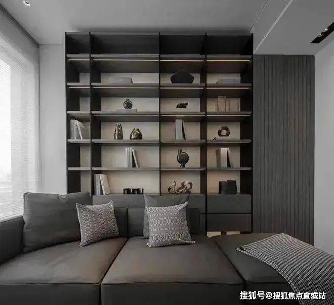 客厅的设计独具匠心,采用了无主灯设计,巧妙地梳理了空间的层次感。灰色的布艺沙发与整体空间风格相得益彰,售楼处电话/地址☎:400-8386-958(预约热线)✔✔✔舒适而优雅。沙发背后的整面收纳墙不仅凸显出极高的生活品味,还为空间增添了实用性。落地窗确保了充足的光源,让整个客厅充满了明亮与温暖的气息。