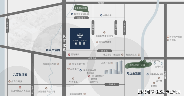 自驾 :紧邻中环北线(青阳路、长江北路出入口),15min直达昆山主城区,30min至上海虹桥枢纽。