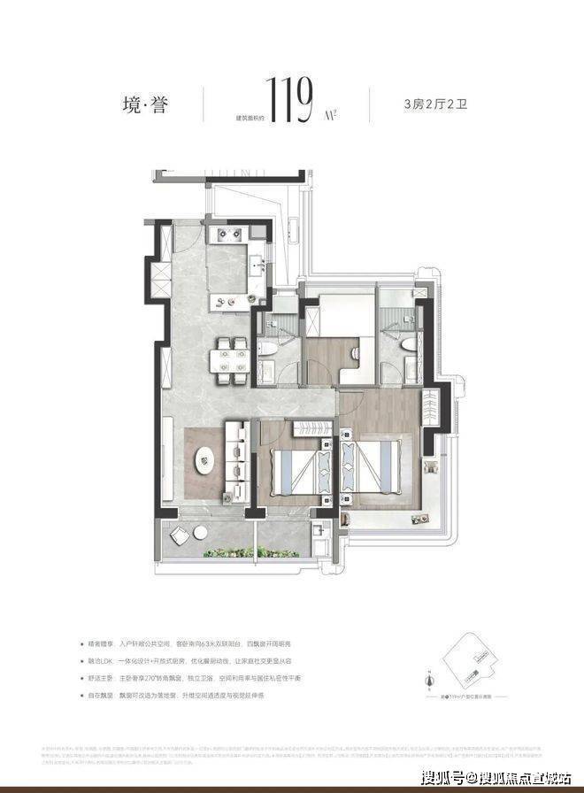 建面约112–119㎡精装大三房