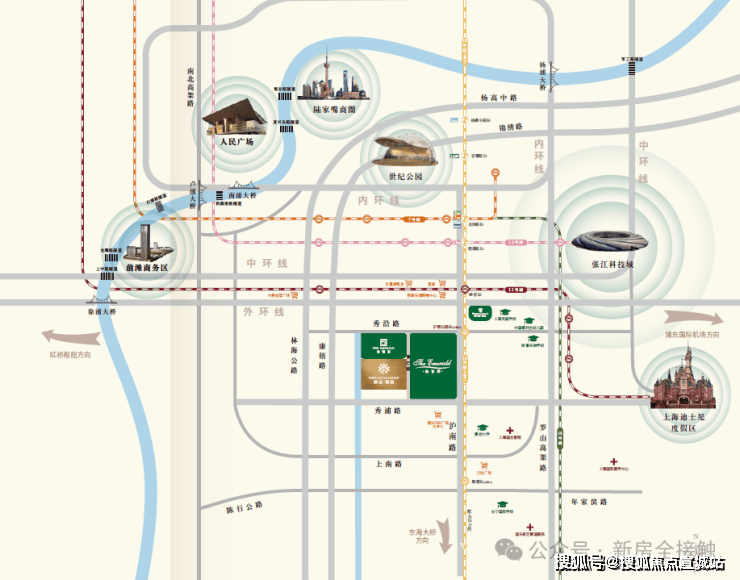 并且凭借区域内的中环线、S20 、11 号线等道路交通设施。把康桥和前滩、张江科学城、迪土尼、浦东国际空港、外高桥自由贸易区等五大引擎连成一条黄金轴线。